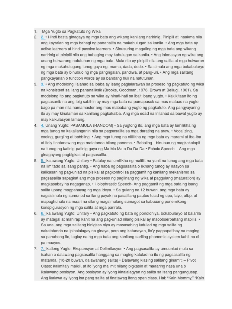 Mga Yugto Sa Pagkatuto Ng Wika Pdf